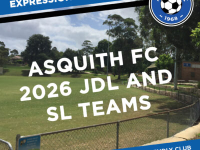 2026 JDL & Super League Trials – Call for EOIs! 31 Oct 2025Pia We’re gearing up for an exciting 2026 season at Asquith FC, with teams confirmed across our Junior Development League (JDL) and Super... Read More0